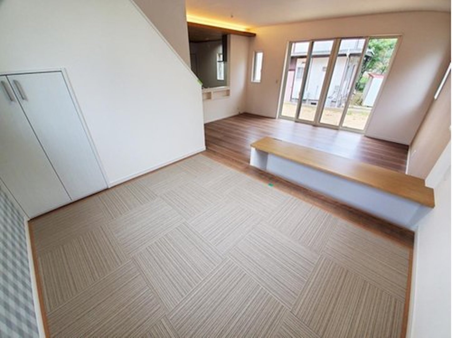 リビングのステージはお子様の遊び場や宿題をする場所としても、お母さんやお父さんの趣味のスペースとしても使えます。