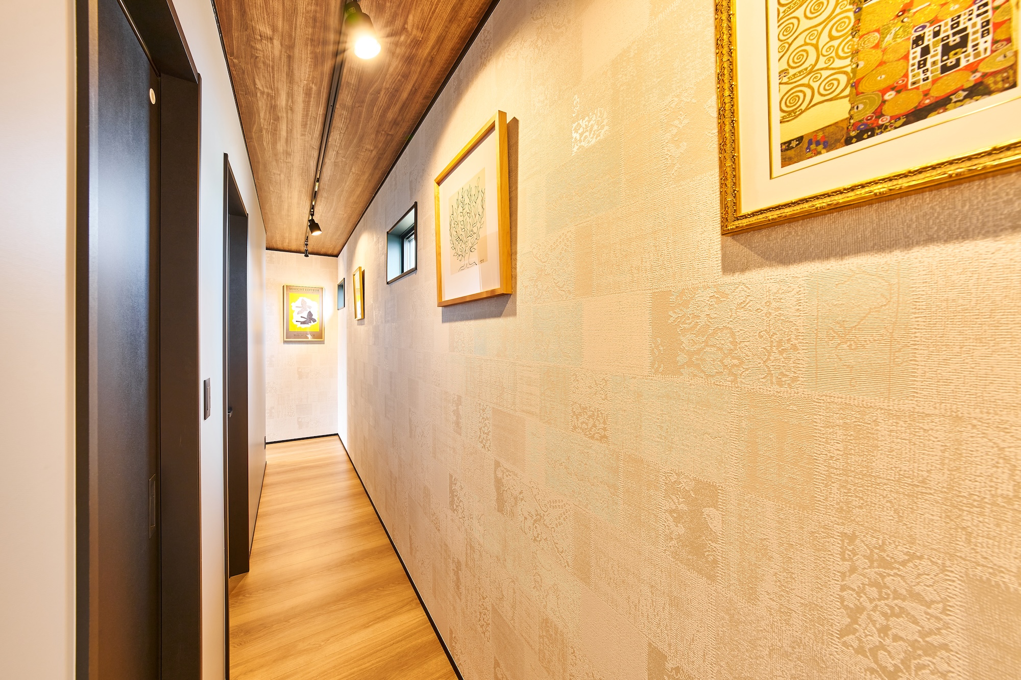 随所にあしらわれたカラークロスや、ギャラリーのようなウォールデコレーションが住まいを彩ります。