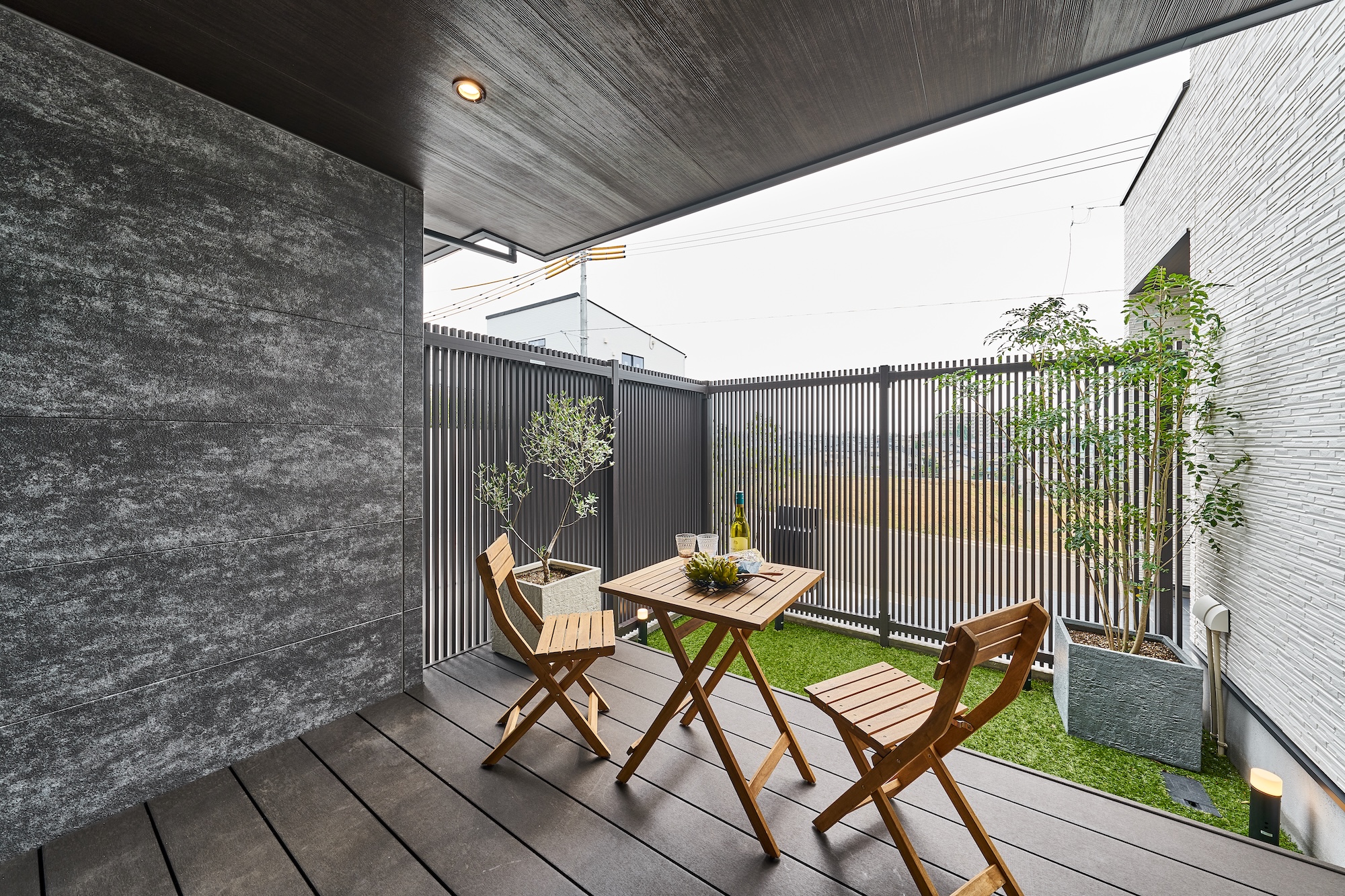 高い塀が外からの視線を遮る、誰にも邪魔されないプライベートな憩いの空間です。