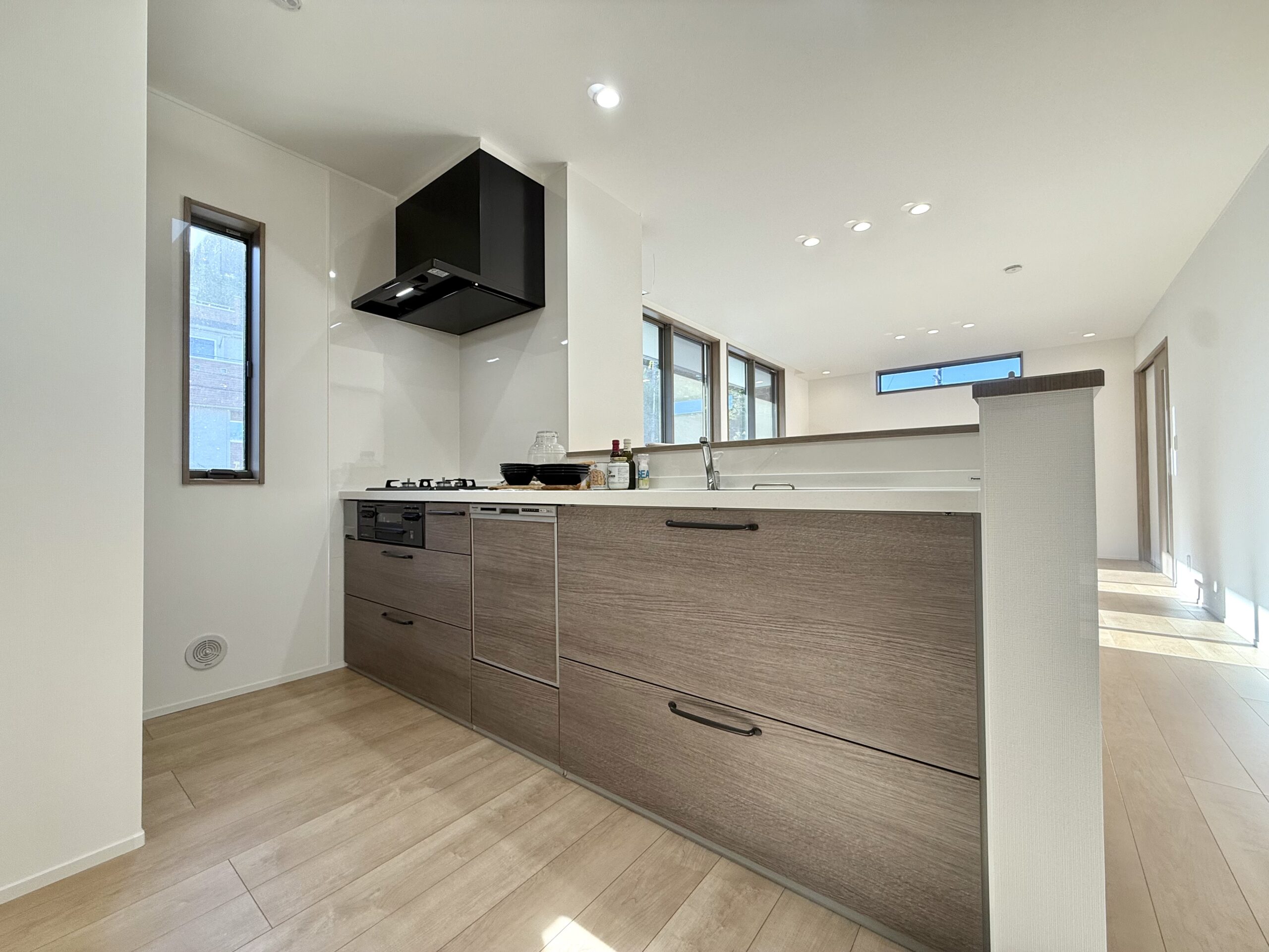 広々としたキッチンには大容量の食洗機を配置。毎日の食器洗いにかかっていた時間が、家族団らんの時間へと変わります♪
