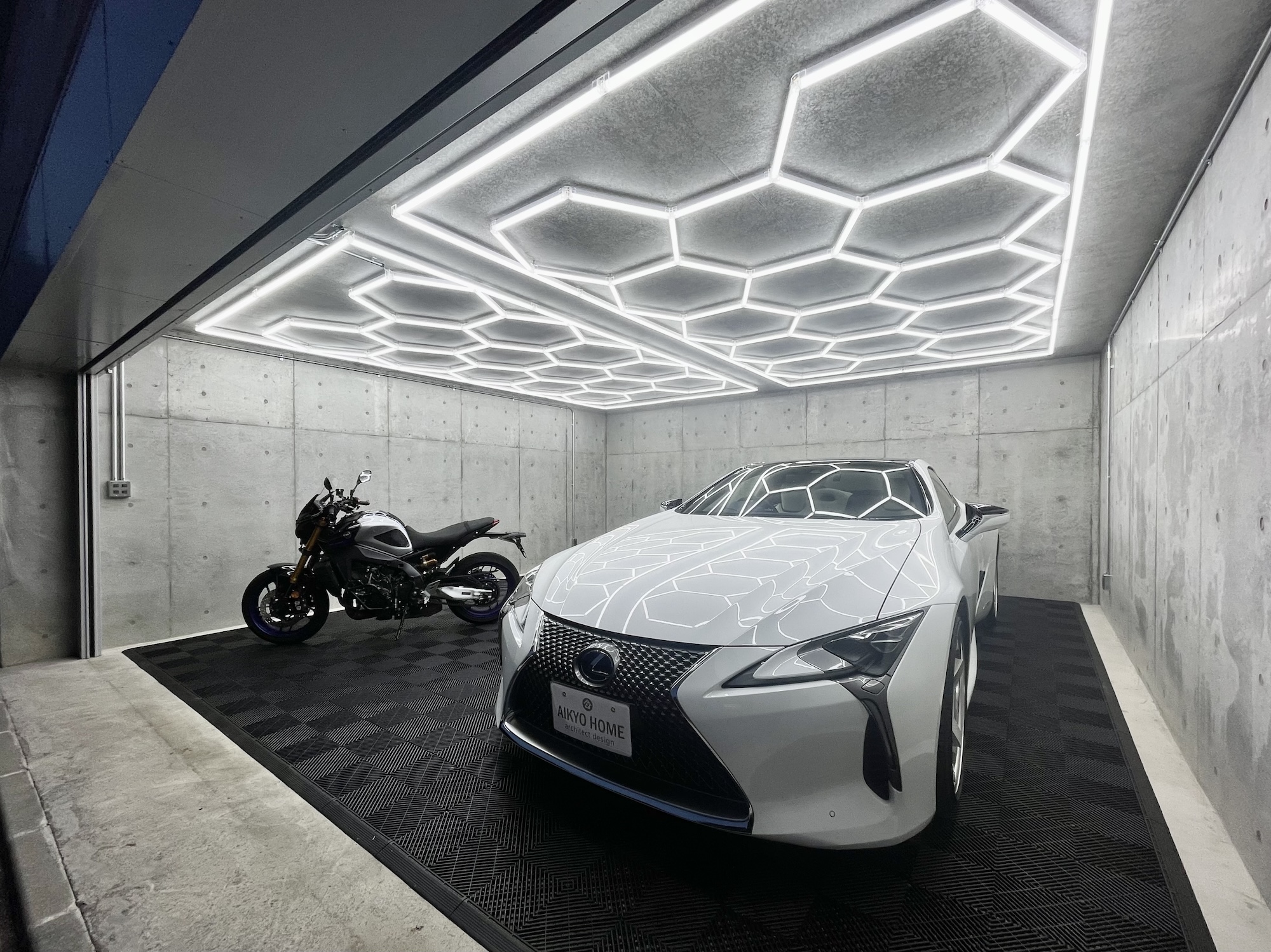 効率的に光を拡散するハニカムライトを設置すれば、車のボディラインやディテールがより一層際立ちます。