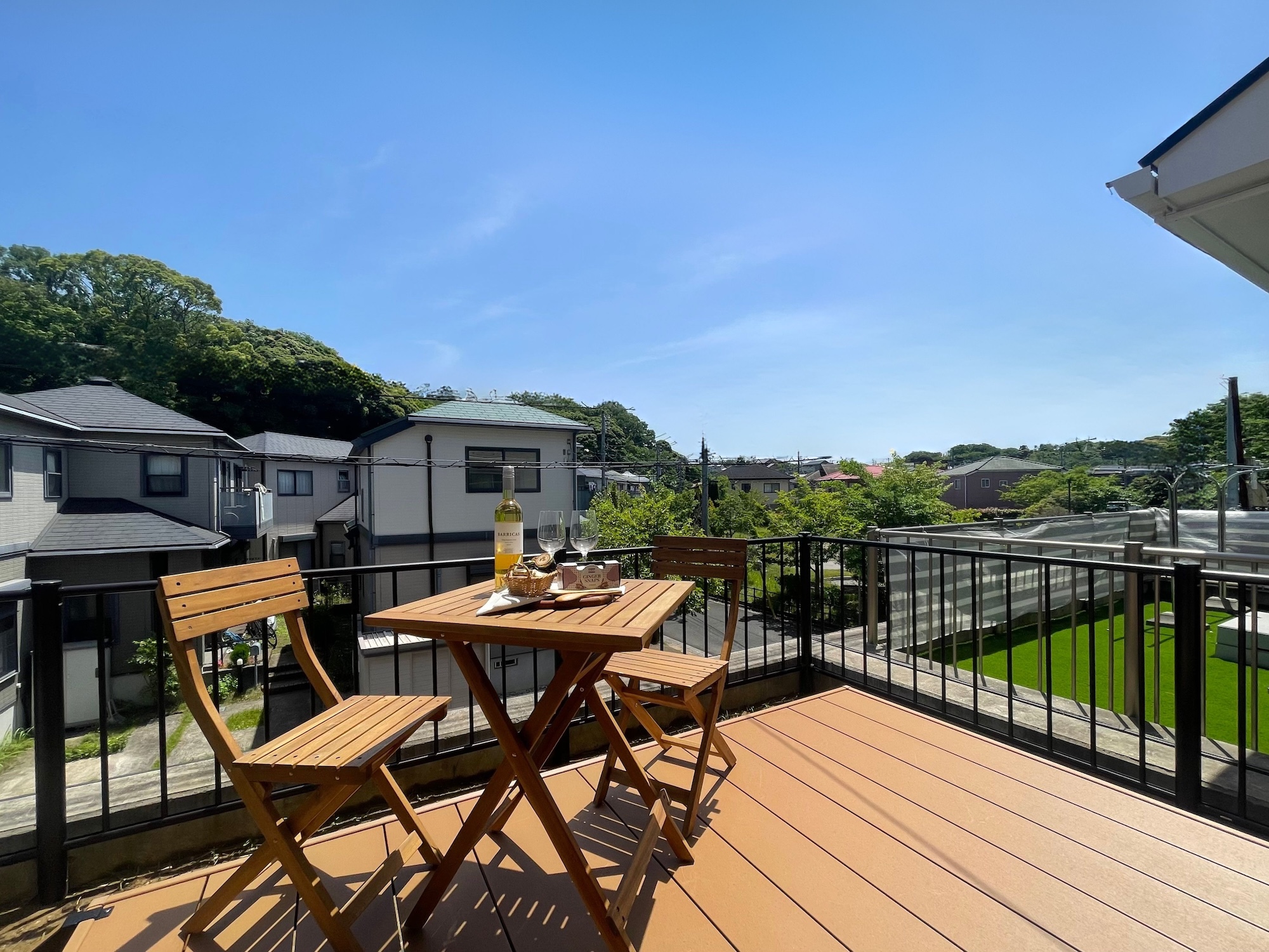 ガレージの上に住まいを建てるため、お部屋やテラスの位置が自然に高くなり、深呼吸したくなる開放的な景色を楽しめます♪