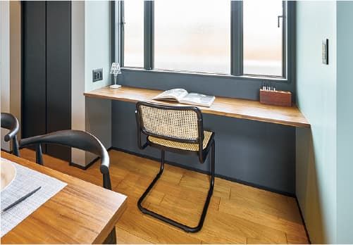 ダイニング近くの窓際にカウンターを設けることで、子どものリビング学習やレシピの確認、調理器具の片付けなど、様々な場面で便利に活用できます。
