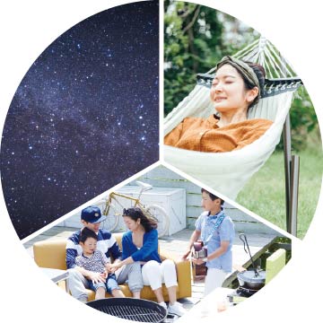 夜には広がる星空を見ながら天体観測や休日にはお家キャンプを楽しむ。